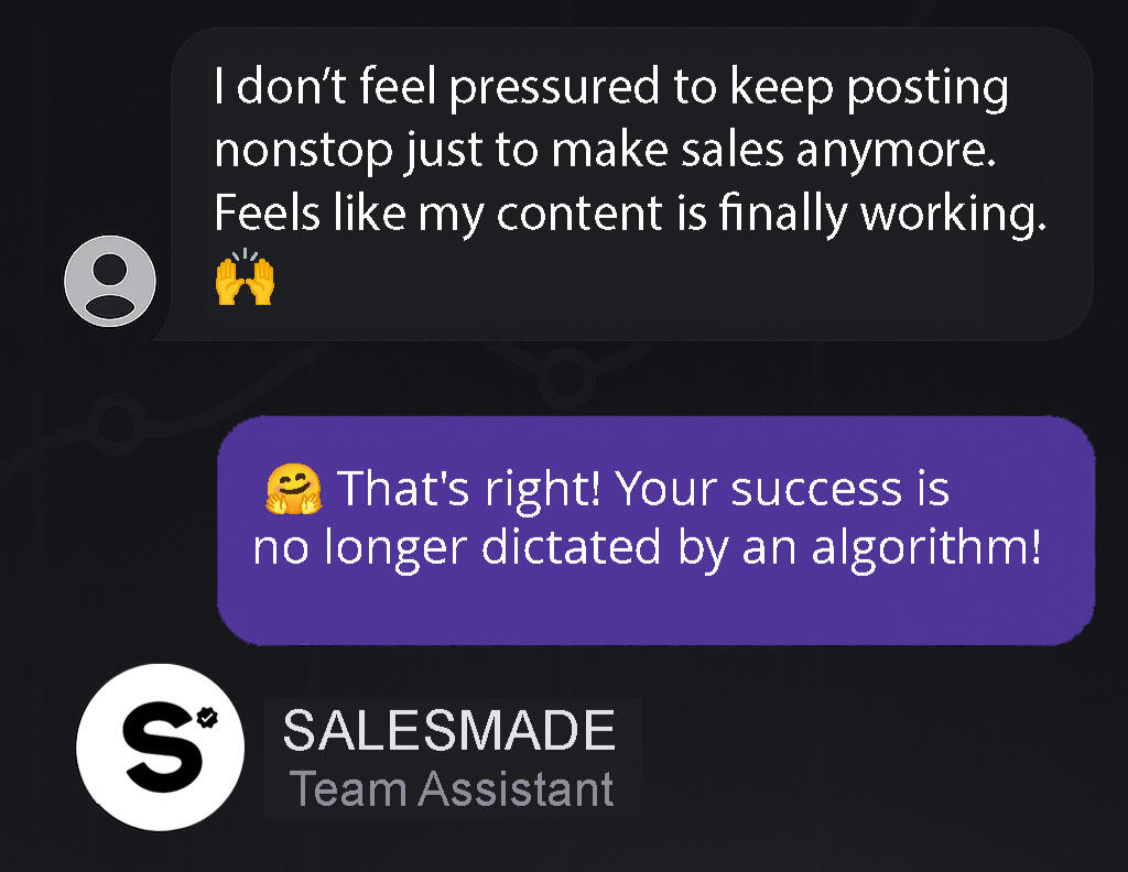You didn’t sign up to cold DM strangers, spend hours chasing leads, or feel awkward trying to sell.That’s why I built SalesMade.ai✅ A system that sounds like you